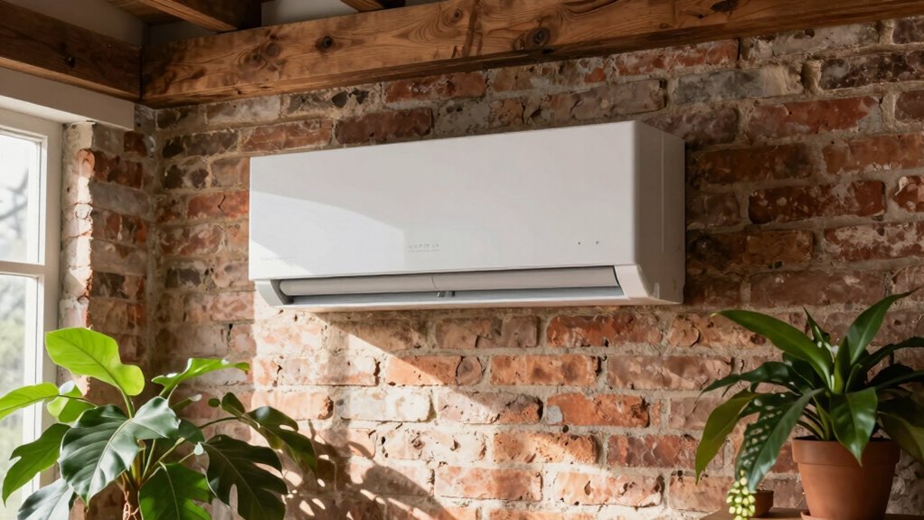 You’ll find that different mini split mounting options considerably affect the aesthetic integration and visual impact in your space. Wall mounts blend seamlessly when positioned high and painted to match your wall, maintaining a clean look. Ceiling cassettes offer a discreet appearance, while floor mounts are more noticeable but can suit specific designs. Considering your interior style helps minimize visual impact, making your mini split less obtrusive and more visually appealing.