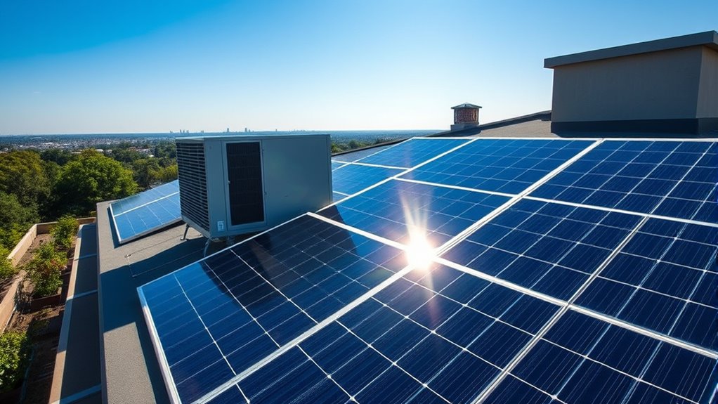 Solar-ready HVAC systems are designed to connect smoothly with your home’s solar energy setup, letting you harness the sun’s power for heating and cooling. They enable you to reduce energy bills and boost sustainability while taking advantage of incentives like tax credits. These systems are future-proof, helping you save money long-term and decrease reliance on the grid. Keep exploring to discover how integrating solar-ready HVAC can transform your home’s energy efficiency.