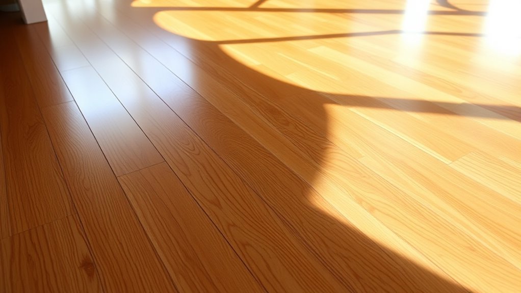 You should reapply hardwood floor polish every 2 to 3 months for ideal shine maintenance. This reapplication frequency helps keep your floors looking fresh and glossy without buildup. Keep an eye on the shine; if it begins to fade or looks dull sooner, consider reapplying earlier. Avoid over-polishing, as it can create residue. Regular reapplication ensures your floors stay vibrant and residue-free, maintaining their natural beauty.