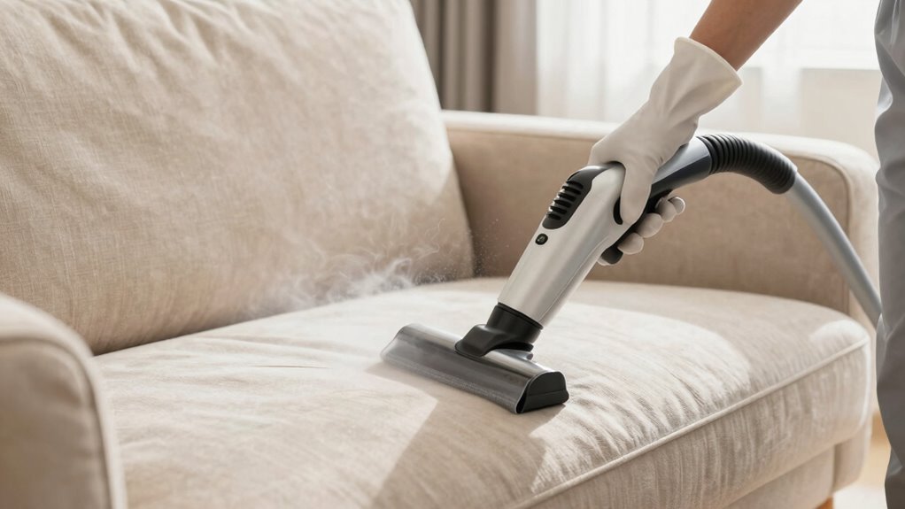 Like a gentle breeze through a lush forest, eco-friendly cleaning offers a fresh gust for your upholstery. Yes, you can opt for non-soaking methods using natural, biodegradable solutions that lift dirt without drenching your furniture. These eco-friendly cleaning options are safe for your family and the environment, making your deep cleaning routine both effective and sustainable. Embrace these gentle techniques to keep your couch pristine without the need for soaking.