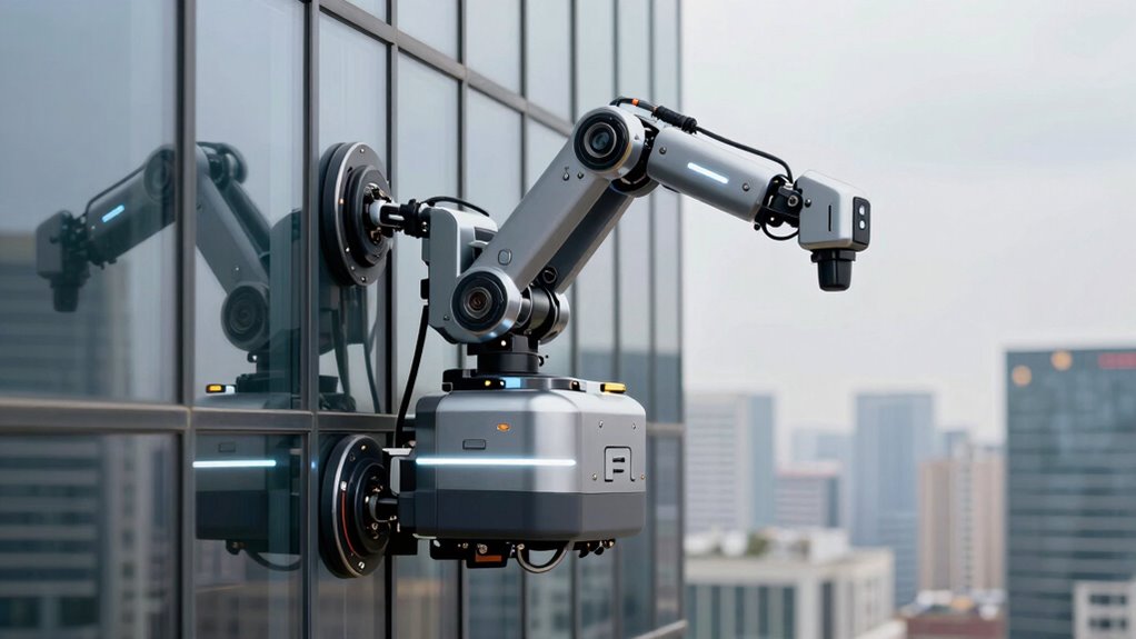 Robot window cleaners use advanced sensors and suction systems to navigate and cling securely to glass surfaces. These robots rely on sophisticated robot sensor technology to detect edges, obstacles, and surface contours, ensuring smooth movement without falls or collisions. These sensors continuously scan the environment, allowing the robot to adjust its path in real-time. Additionally, they are designed to be compatible with various cleaning solutions, ensuring effective dirt and streak removal without damaging the glass or leaving residues. Suction systems create a strong vacuum grip that keeps the robot firmly attached even in windy conditions or on vertical surfaces. Proper extension cord standards and weatherproof tool storage can also help prevent accidents during maintenance or setup. Incorporating robot safety features, such as automatic shutoff when obstacles are detected, further enhances user security. Advances in sensor technology have significantly improved the reliability and safety of these cleaning robots.