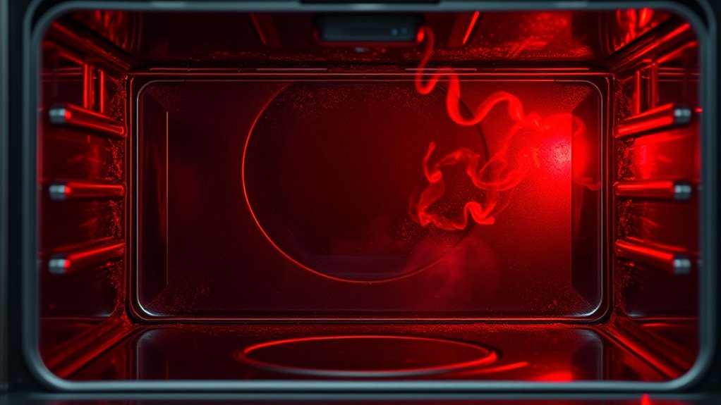 Using your oven’s self-cleaning function might save time, but it can be costly and risky. High temperatures release harmful fumes and smoke, which can threaten your health and damage your appliance or cabinets if not ventilated properly. It also increases energy bills and accelerates wear on internal parts, potentially leading to expensive repairs. If you want to understand how to avoid these pitfalls and keep your kitchen safe and budget-friendly, there’s more you should know.