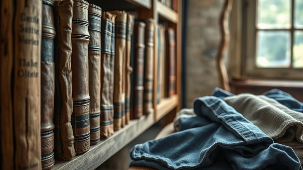 To deodorize musty books and clothes without damage, try natural methods like sprinkling baking soda inside covers or garments, then leaving them sealed for a few days to absorb odors. You can also mist them lightly with a mixture of water and white vinegar, avoiding saturation. Placing items in airy, sunlit spaces helps eliminate smells naturally. These gentle techniques preserve delicate materials and are safe to try—discover more tips to freshen your belongings effectively.
