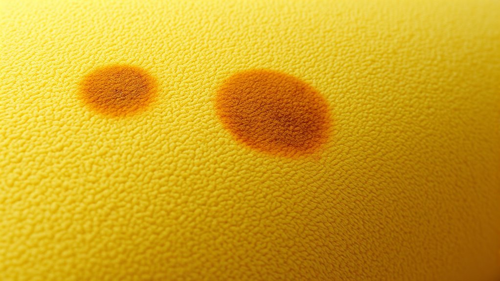 For persistent stains, consider soaking your pillowcases in a mixture of water and a stain-fighting solution, like hydrogen peroxide or baking soda, before laundering. These natural options are gentle but powerful enough to break down yellowing caused by sweat and oils. Remember, the key to maintaining pillow cleanliness is consistency and proper care. Regular washing, combined with the right detergent options and stain prevention methods, keeps your pillows looking and feeling fresh. By taking these simple steps, you prevent the yellow stains from forming in the first place and ensure your sleep environment stays clean and comfortable.