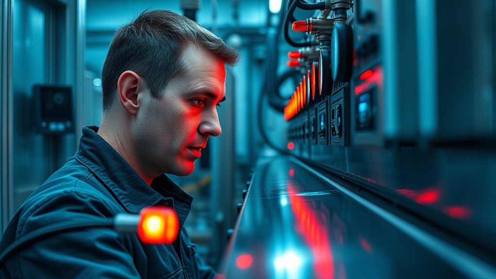 Building on the insights gained from real-time data visualization, diagnostic alert systems leverage sensor monitoring to provide immediate notifications of system issues. These alerts enable you to detect problems early, reducing downtime and preventing costly failures. When your sensors identify anomalies—like pressure drops, temperature spikes, or flow disruptions—the system sends instant alerts. This immediate feedback helps you prioritize repairs and maintain ideal flow balance. To maximize efficiency, guarantee your alert thresholds are properly calibrated. Regularly review alert logs to identify recurring issues. Integrate your alert system with maintenance schedules for proactive responses. Keep your team informed with clear, actionable notifications. With effective diagnostic alerts, you gain better control over system health, minimizing interruptions and maintaining seamless operation.