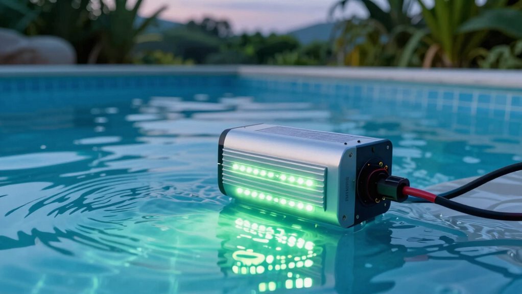 A stitch in time saves nine, so consider energy-efficient options like LED alternatives and smart transformers. These modern solutions use less power, provide better control, and last longer than traditional transformers. Switching to LED pool lights with smart transformers can cut energy bills and reduce your carbon footprint. You’ll enjoy brighter, more reliable lighting while being eco-friendly. Upgrading now guarantees you’re ahead of the curve in energy savings and convenience.