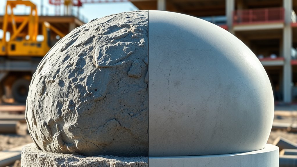 Evaluating the structural strength and durability of shotcrete versus cast-in-place concrete involves examining their material properties and how they perform under stress over time. Shotcrete is typically denser and has fewer voids, which enhances its compressive strength and resistance to cracking. It also bonds well to existing surfaces, improving overall stability. Cast-in-place concrete benefits from controlled mixing and curing, resulting in consistent strength and durability. However, it may be more susceptible to shrinkage cracks if not properly cured. Both materials can be engineered for durability, but shotcrete’s rapid application and better adhesion can make it more resilient in harsh environments. Additionally, color fidelity in shotcrete applications can be optimized with surface treatments, which can improve visual integration with other structural elements. Ultimately, your choice depends on specific project requirements, exposure conditions, and the desired longevity of the shell.