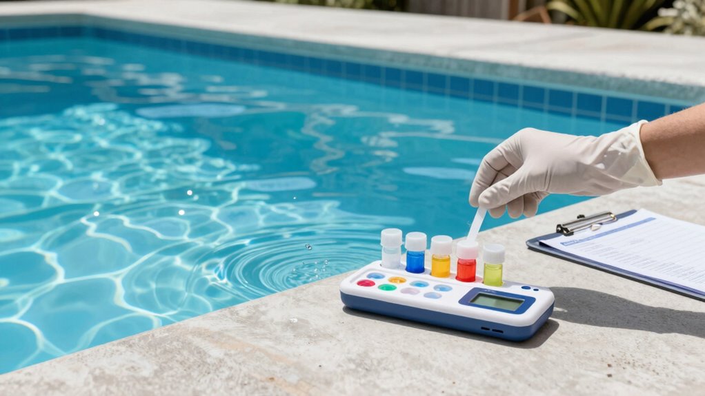 Establishing a regular testing schedule is key to maintaining balanced pool chemistry efficiently. It ensures water testing becomes a routine, preventing issues before they escalate. To keep your water chemistry in check, follow these steps: