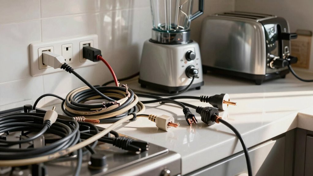 Using cheap extension cords with your kitchen appliances is like putting a Band-Aid on a broken pipe—it might seem enough at first, but it’ll only lead to bigger problems down the line. These cords can cause overheating, damage your appliances, or even start fires. Protect your investment and keep your kitchen safe by investing in quality cords. Remember, when it comes to appliances, cutting corners now can turn into costly headaches later.