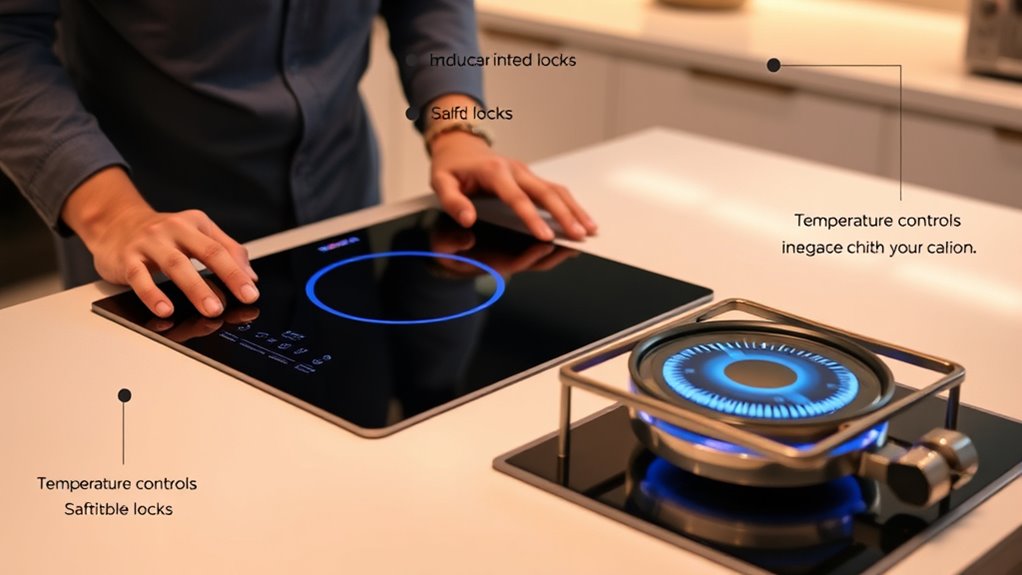 Finally, always unplug your induction cooktop or portable burner when not in use, especially if you’re going to be away for an extended period. This simple step reduces the risk of accidental activation or electrical faults. By combining vigilant child safety practices with diligent appliance maintenance, you guarantee a safer cooking environment for everyone. Taking these precautions might seem minor, but they make a significant difference in preventing accidents and prolonging the lifespan of your appliances. Remember, safety isn’t just about avoiding immediate danger; it’s about creating a secure space where you can enjoy cooking without worry.