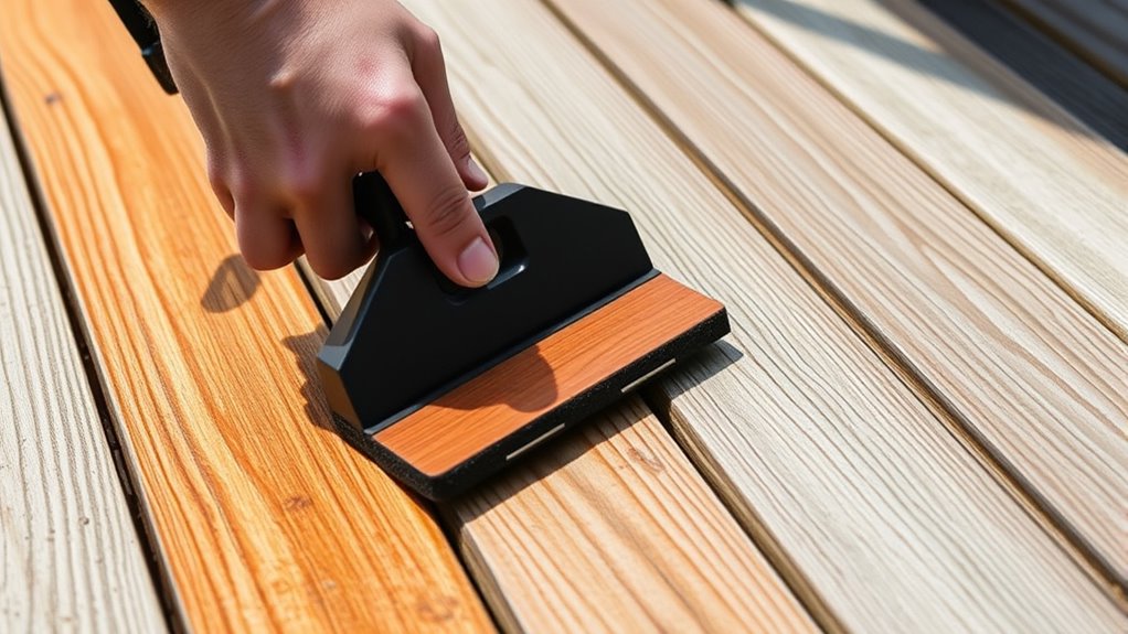 Notably, some applicators can handle both oil-based and water-based stains. I’ve found that synthetic brushes and rollers made from nylon or polyester work well for both types because they resist solvents and don’t absorb stain like natural fibers do. However, I always make sure to clean them thoroughly after each use to prevent cross-contamination. Using versatile applicators saves time and effort, making your deck staining project smoother and more efficient.