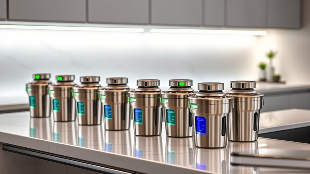 They say, “Every little bit helps,” and that’s true for eco-friendly disposal options. I’ve found that composting and biodegradable waste bags are excellent choices. Some disposals now feature eco modes or are made from sustainable materials. Switching to these options reduces landfill waste and minimizes environmental impact. If you want to go greener, look for models with energy-efficient ratings and eco-friendly features—small changes, big difference.