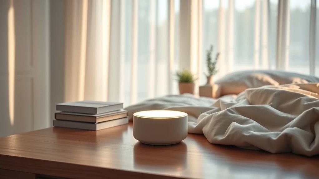 If you’re seeking travel-friendly options, I recommend compact sleep devices like the Dodow or Lumie Bodyclock. They’re lightweight, easy to pack, and don’t compromise on features. I’ve found these perfect for trips because they’re simple to use and won’t take up much space in my luggage. Plus, their portability means I can maintain my sleep routine anywhere, ensuring restful nights wherever I go.